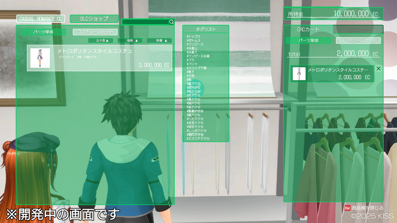 コスチュームショップでは主人公やヒロインが身につけるコスチュームなどを購入が出来ます。